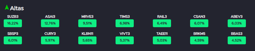Maiores altas e baixas do Ibovespa na semana
