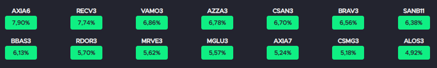 A Cosan (CSAN3) avançou 6,70%, refletindo desdobramentos envolvendo a Raízen (RAIZ4), controlada em conjunto com a Shell. A Raízen admitiu a possibilidade de um aporte de capital maior para equacionar sua estrutura financeira, movimento visto como passo relevante para uma reestruturação mais objetiva.