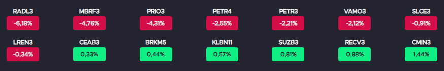 Maiores altas e baixas do Ibovespa na semana