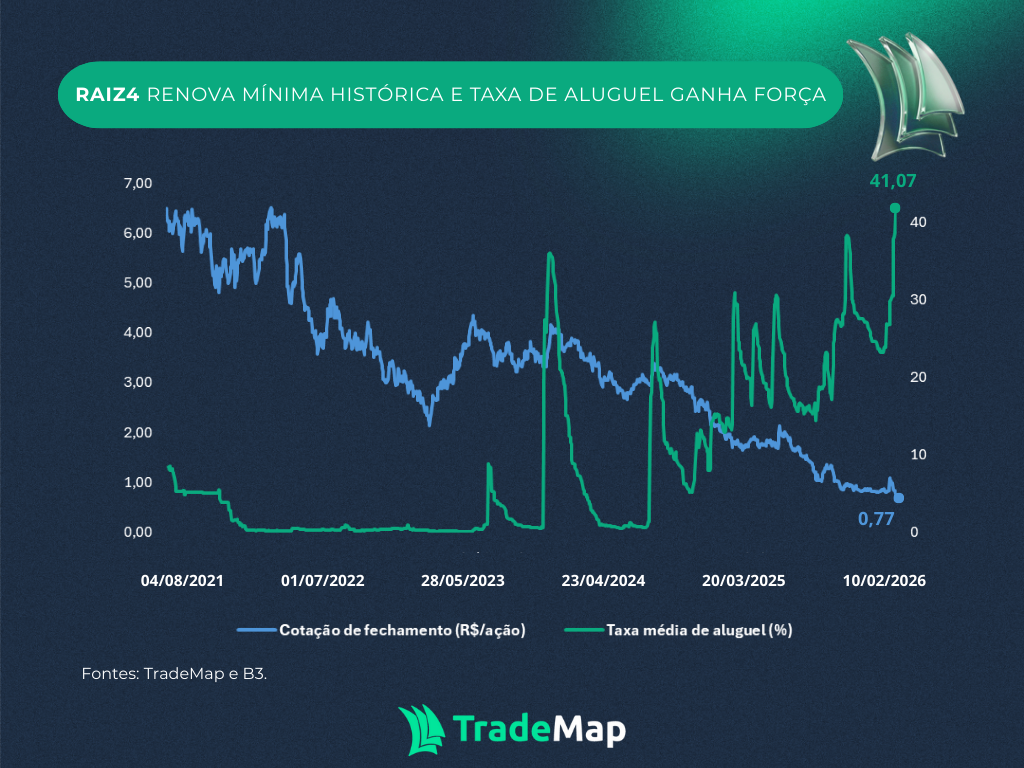 Raízen (RAIZ4) renova mínima histórica enquanto taxa de aluguel atinge recorde