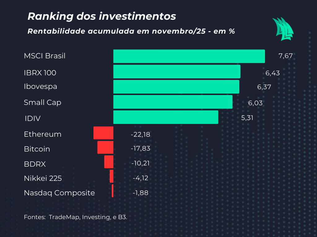 Com esse ambiente, confira o desempenho de cada classe de ativo em novembro.