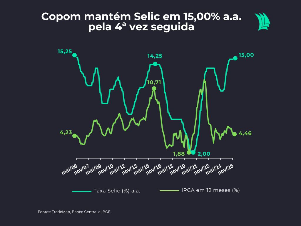 Selic é mantida em 15,00% a.a. e BC adota tom firme ao encerrar o ano sem cortes